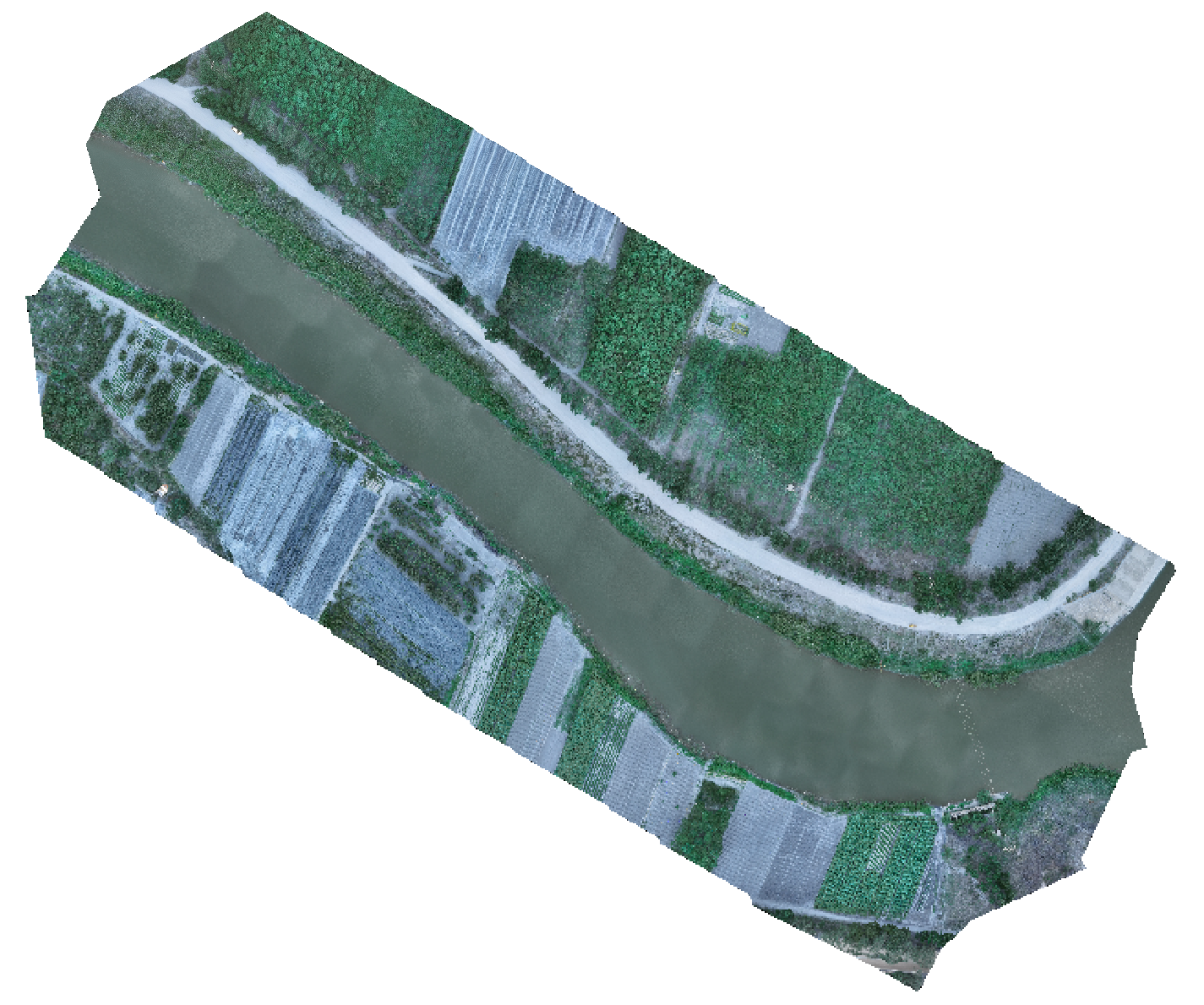 遥感水文站位置、三维数字河道、遥感水文站断面和景观图如下图所示: